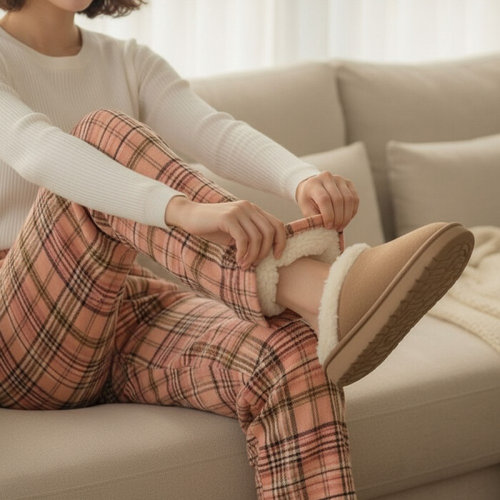 1+1 공유 양털 체크 밴딩바지 수면바지 커플잠옷 수면잠옷 겨울잠옷 여성잠옷 잠옷바지