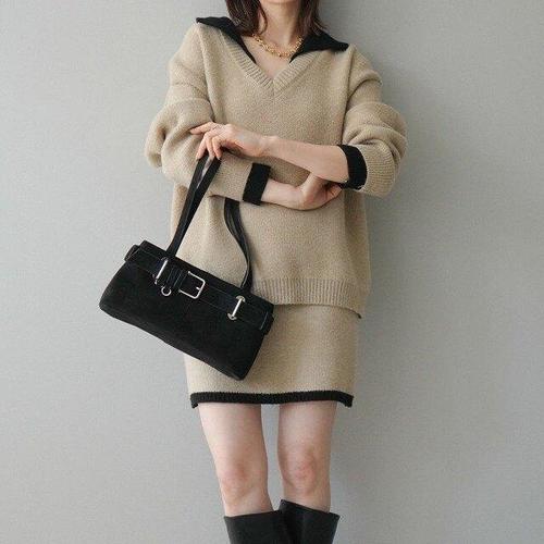 [셀러허브_여성트랜드패션]버튼 미니 스커트 투피스 니트 세트 LL_S113