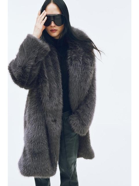 [에이치엔엠] 플러피 코트 다크 그레이 1101014008