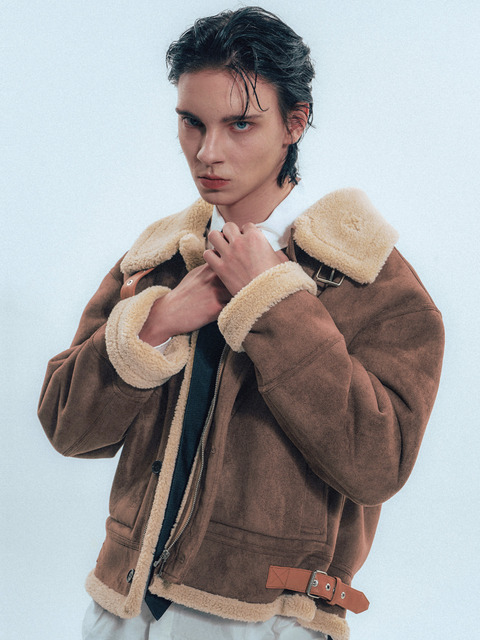 [라우디] 비건 스웨이드 에비에이터 무스탕 자켓_모카브라운