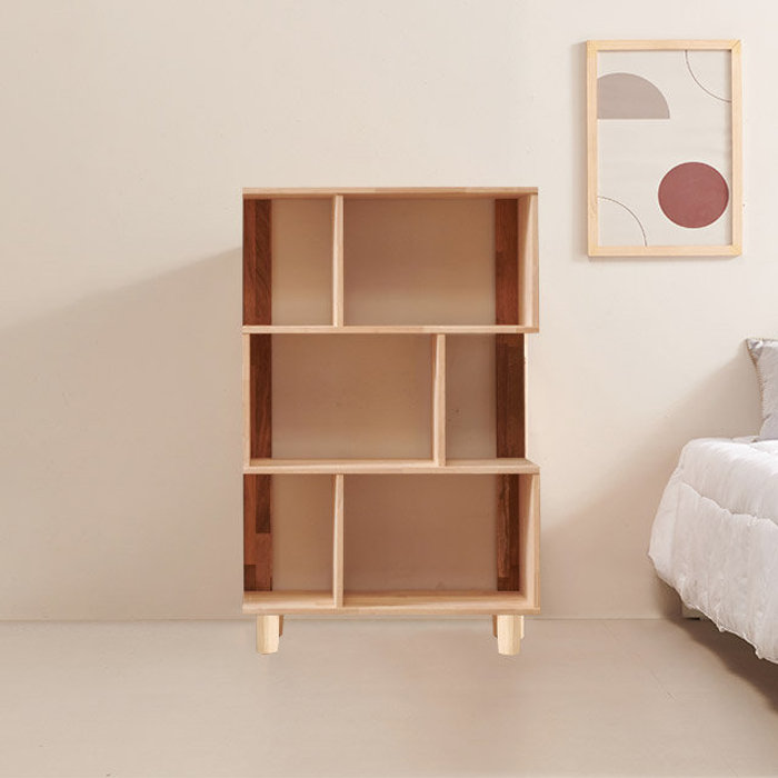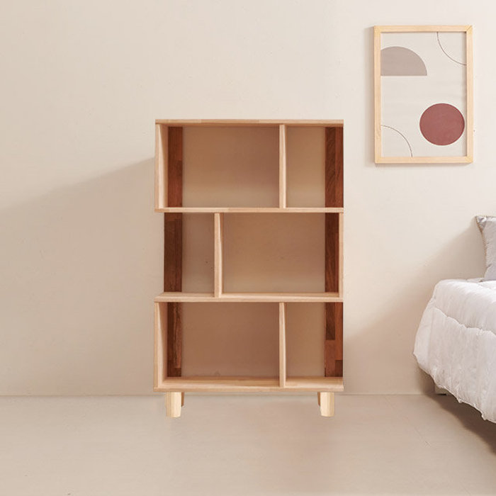 히트가구 [착불배송 상세확인] H6891 고무나무 3단 원목발 우측형 책장 1color