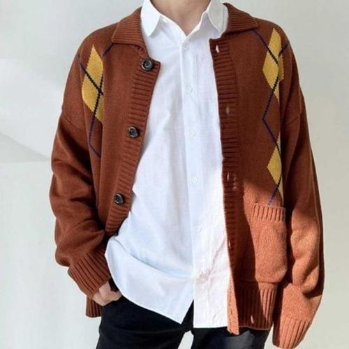 [엄지척]빅사이즈 인기 남자 아가일 니트 감성 넥카라 가디건_20480891_667501
