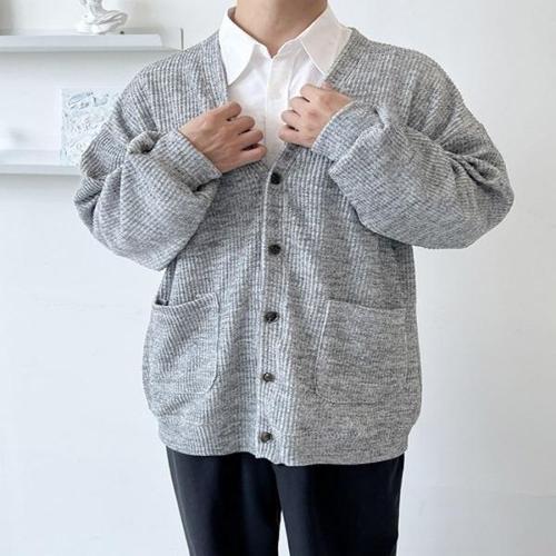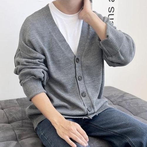 Makone 남성 가을 겨울 브이넥 솔리드 심플 니트 가디건