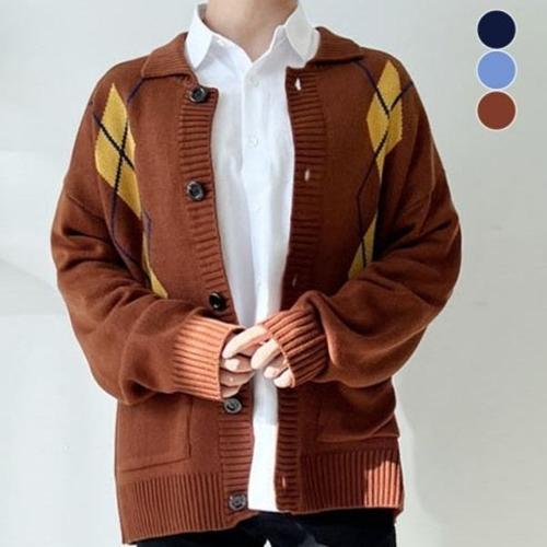 [엄지척]빅사이즈 아가일 패턴 포인트 단정 남성 니트 가디건_20480844_667501