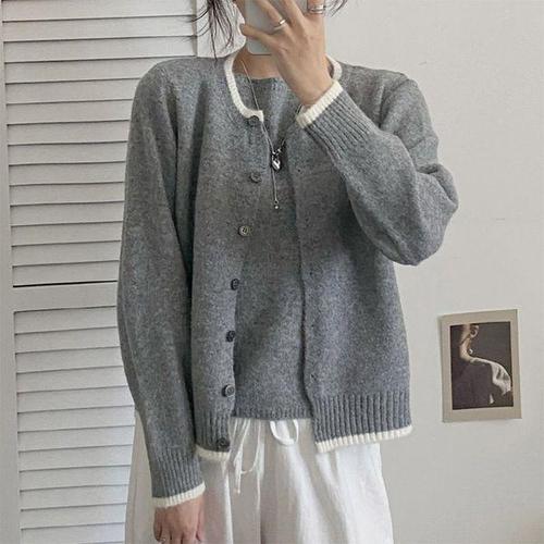[신상오픈런]여성 울 니트 민소매 이너와 배색 라운드 가디건 세트