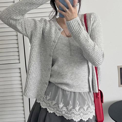 [신상오픈런]여성 레이스 레이어 골지 나시와 라운드 울 가디건 세트