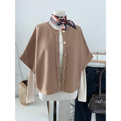 [샵앤]여성 라운드넥 금장 단추 가오리핏 반팔 니트 가디건 DGB-WCD-4738-베이지