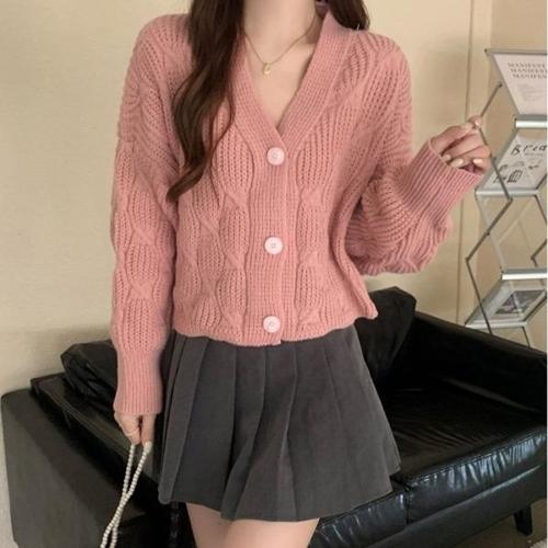 [엄지척]여성 2컬러 가오리핏 러블리 니트 숏 브이넥 가디건_19791377_667501