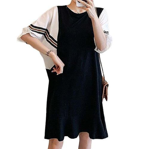 여성가오리핏 페이크소재 심플겹쳐입기 원피스룩