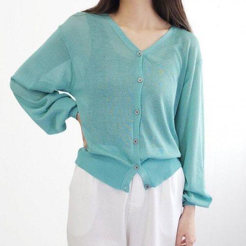 [모노무드]MNO 우먼 이지 하절기 니트집업 프레시 쉬어소재 에어컨 가오리 루즈핏 아우터니트가디건