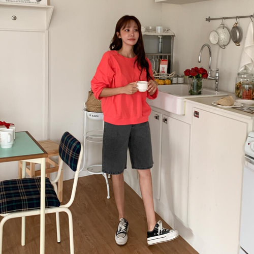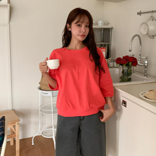 [옷자락] 여자 캐주얼 코튼 무지 절개 가오리핏 7부 맨투맨