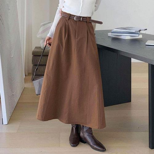 (~XXL까지) 아비트첼 H라인 벨트 롱스커트 가을 슬림핏 신축성 하객룩 오피스룩 모임룩 격식룩 빅사이즈