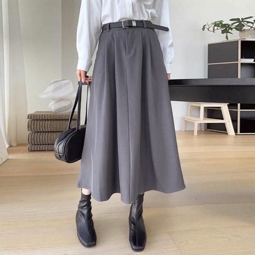 [유야]여성 벨트세트 핀턱 A라인 롱스커트 치마 -FSK0192- 봄 가을