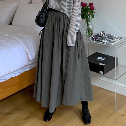 [유야]여성 리본 셔링 바스락 롱스커트 밴딩 치마 -FSK0196- 봄 가을