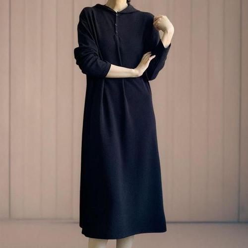 [엄지척]후드 캐주얼 가을 겨울 니트 롱 베이직 원피스 긴팔_19805945_667501