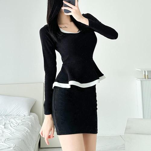[옷자락] [시즌오프]페플럼 배색 슬림긴팔 가을 하객룩 미니원피스_5