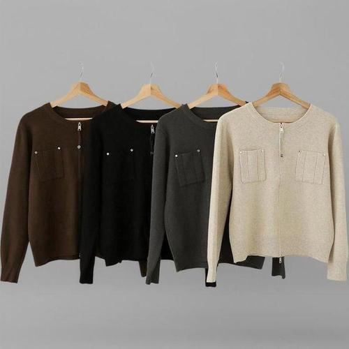 [신상오픈런]여성 리벳 포켓 투웨이 집업 라운드넥 가을 니트 가디건