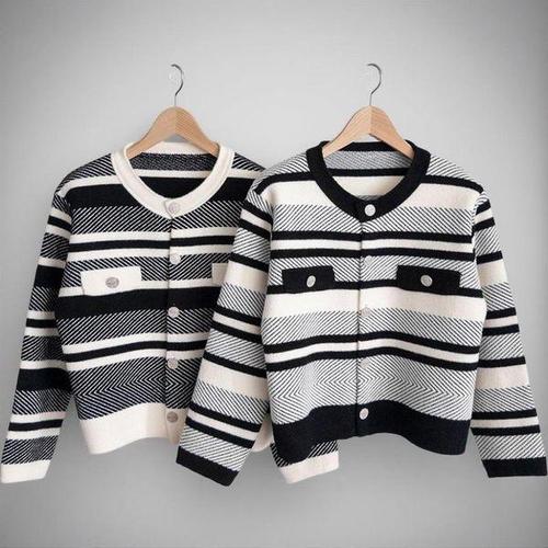 [신상오픈런]여성 스트라이프 니트 라운드 기본 가을 가디건