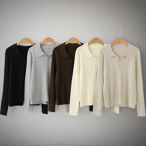 [신상오픈런]여성 골지 카라넥 긴팔 가디건 버튼 베이직핏 가을 니트