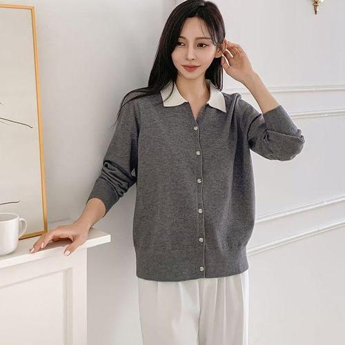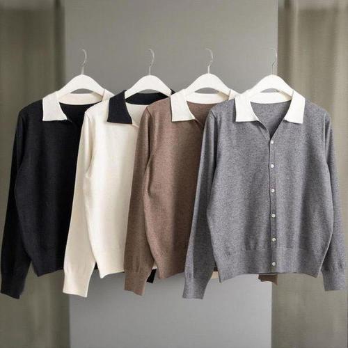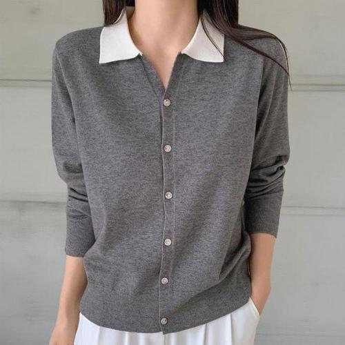 [신상오픈런]여성 배색 카라 버튼 기본핏 가을 니트 가디건
