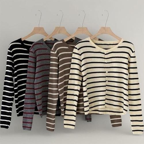 [신상오픈런]|CSJ6791|여성 스트라이프 니트 라운드 기본 가을 가디건_22934280_597559