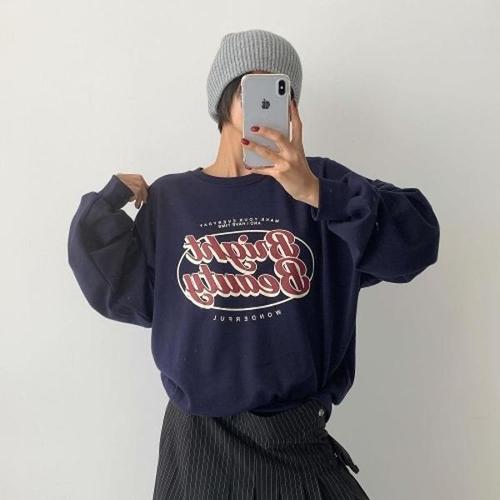 [신상오픈런]여성 오버사이즈 배색 프린트 가을 긴팔 티셔츠 코튼 맨투맨