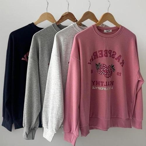 [신상오픈런]|KST9852|여성 키치 딸기 프린트 핑크 가을 오버핏 면 티셔츠_22777333_597559