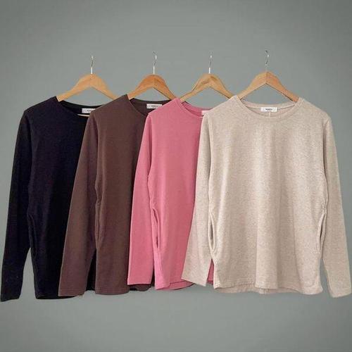 [신상오픈런]여성 가을 색감 데일리 언발란스 힙 커버 기본 긴팔 티셔츠