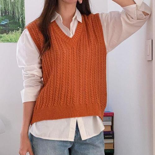 [신상오픈런]여자 케이블 브이넥 주황 초록 가을 개강룩 니트조끼