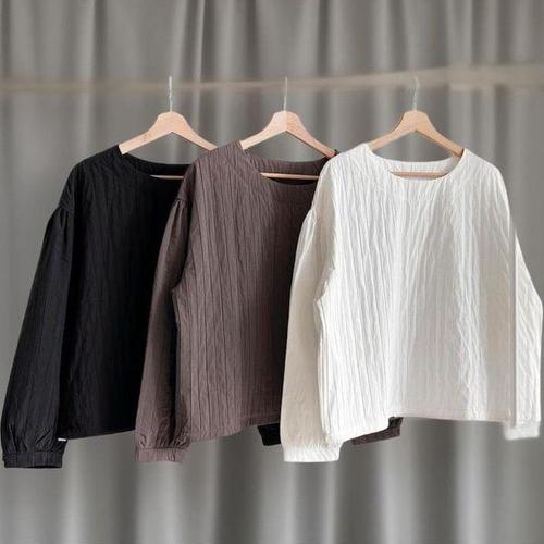 [신상오픈런]여성 오버사이즈 긴팔 스티치 골지 스트링 가을 티셔츠