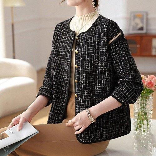 여성 체크 패턴 루즈핏 클래식 자켓 봄 가을 아우터