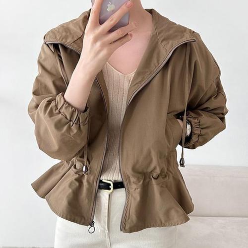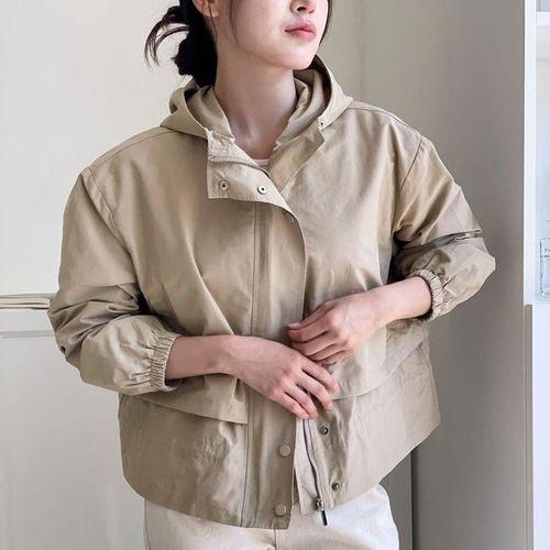 [옷자락]여자 가을아우터 하이넥 스트링 후드 버튼 바스락 점퍼
