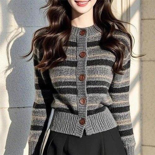 [아리엘스타일]스트라이프니트 단추니트 가을아우터 드엘리니트가디