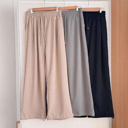 빅사이즈 편안한 부드러운 팬츠 스트링 배색 니트바지 밴딩 여성 가을 겨울 루즈핏 캐주얼 소프트 홈웨어 긴바지