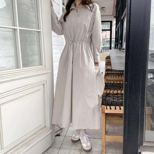 [다잇템]여자 나일론 봄가을 드로우코드 남방 롱원피스