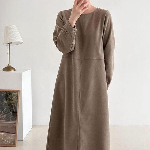 [신상오픈런]여자 가을 속기모 빅사이즈 절개 심플 등원룩 롱원피스