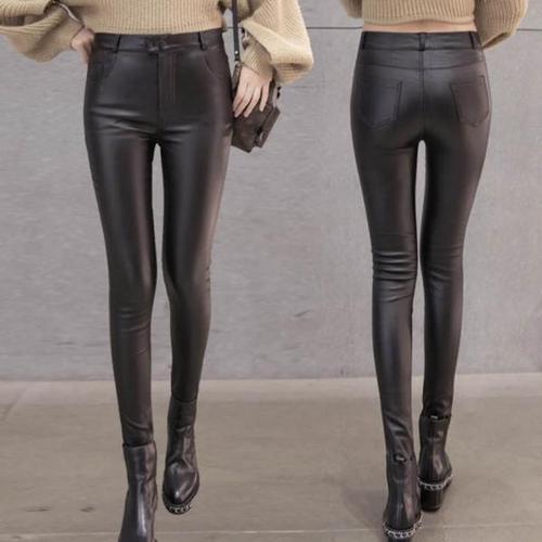 슬림소녀 여성 가을겨울 슬림핏 무광택 기모 스키니 가죽 바지