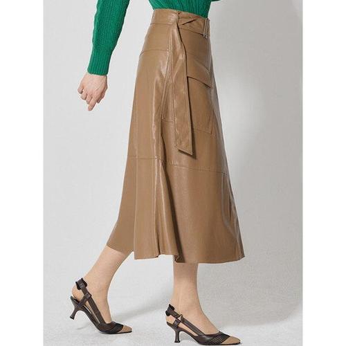 [보니스팍스]품격있는 레이디 FAUX 레더 벨티드 랩스커트