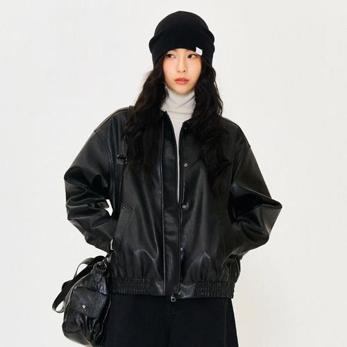 빈티지 아메리칸 간절기 PU 가죽 재킷 블루종 항공점퍼 QOYO