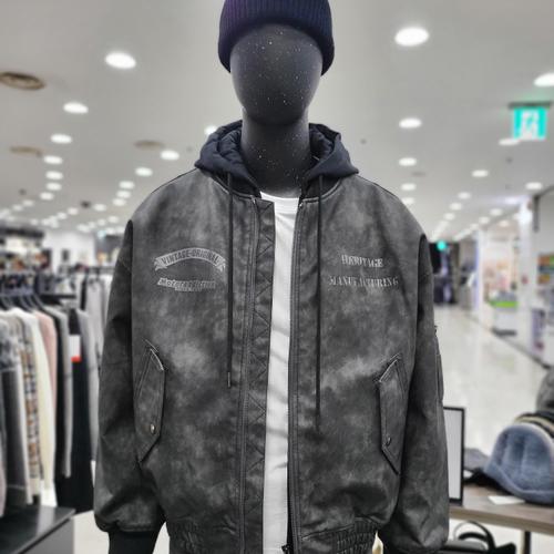 [히코튼]레더 후드 레이어드 항공 점퍼