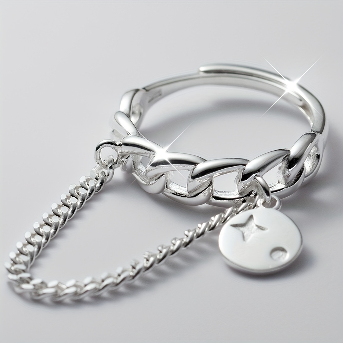 TEMU 1개 0.5g S925 실버 여성용 반짝이는 개성 소프트 체인 링 저알레르기|반지