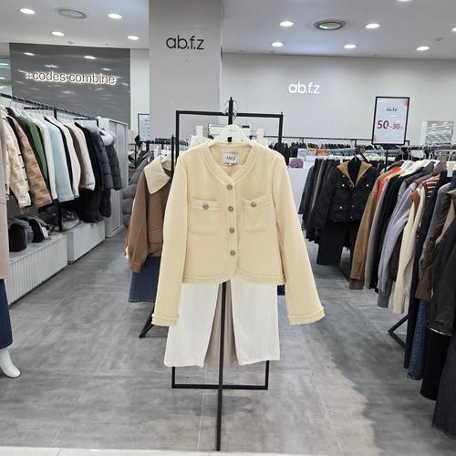 [ab.f.z]AFA5HJ01/간절기 단추 포인트 노카라 트위드 숏 자켓-IC