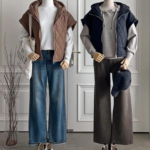 [HYIJY7US_4B]여성 간절기 롱패딩 후두 조끼 스타일