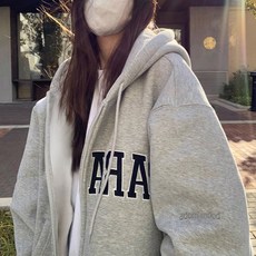 어던무드 남여공용 후드집업 간절기 레터링 빅사이즈 점퍼