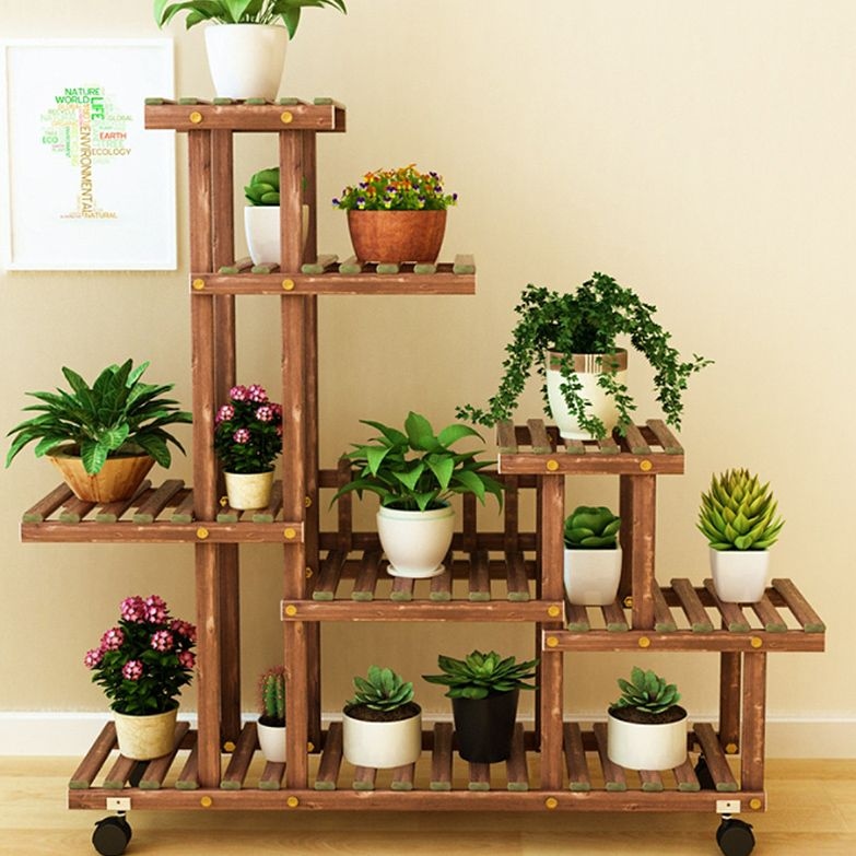 우드 9단 다각도 화분 받침대 거치대 진열대 플랜테리어 인테리어 정리 선반