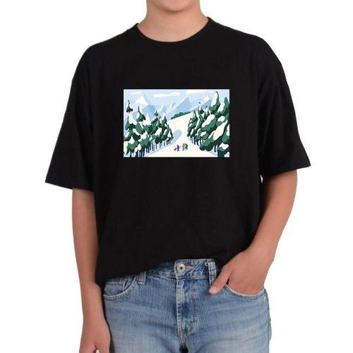 [에이치플러스몰]반팔라운드 겨울풍경 산속의 눈 친구들과 산책 강아지 전사이즈