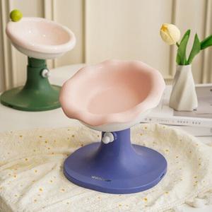 팔업 강아지 고양이 밥그릇 목보호 식기 세트 2구, 1개, 체리블러썸