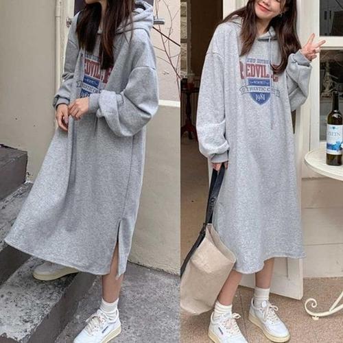 [엄지척]여자 강아지 산책 집앞 외출 루즈핏 후드 면 원피스_19951187_667501