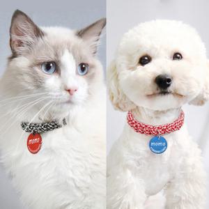 모모펫 강아지목걸이 인식표 고양이목걸이 이름표 체크 알루미늄