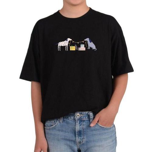 [에이치플러스몰]길단 반팔 USA핏 강아지 두마리 선물포장 생일파티 점박이 선물그림 다양한색상 전사이..
